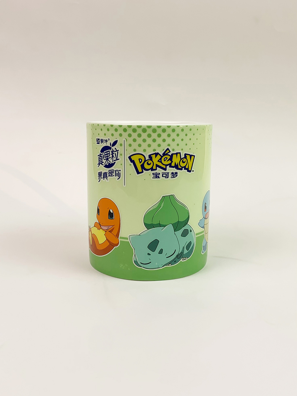 真果粒是蒙牛集團(tuán)推出的全球首款含有可嚼果粒的新一代牛奶飲品。2006年就已經(jīng)首創(chuàng)成功并推向市場。作為中國乳業(yè)的龍頭,蒙牛始終堅持自主創(chuàng)新的原則,積極探索著更適合中國人身體膳食結(jié)構(gòu)的營養(yǎng)飲品,面對全球30%以上人口維生素等營養(yǎng)缺乏及亞健康狀態(tài)的困擾,蒙牛組織各方專家綜合探討,得出最行之有效的方案即是通過合理的膳食來改善營養(yǎng)狀況,尤其是多吃富含維生素的水果、多喝牛奶,更進(jìn)一步提出了“真實果粒+純鮮牛奶”的大膽構(gòu)想,真實就是真果粒。蒙牛集團(tuán)找到我們,想要定制一款關(guān)于真果粒與寶可夢聯(lián)動的杯子,經(jīng)過不斷地設(shè)計調(diào)整,最終選定,下面是產(chǎn)品的實拍圖: