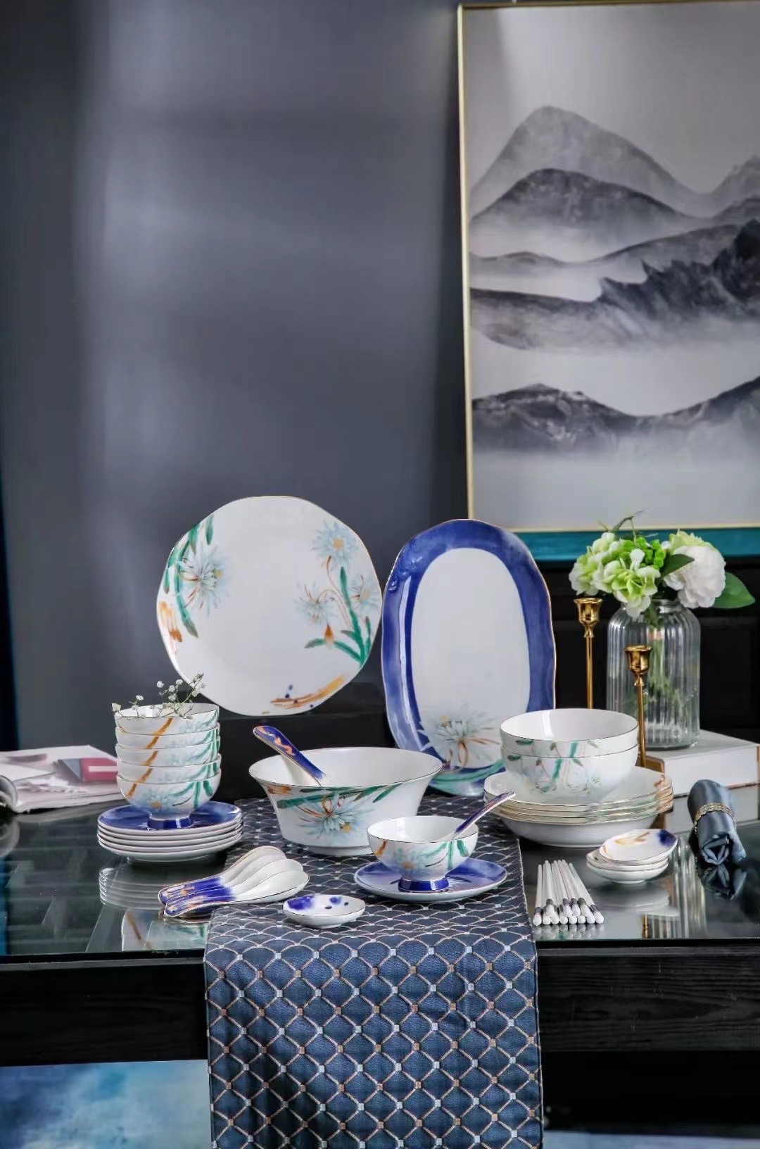 輕奢新中式陶瓷餐具套裝