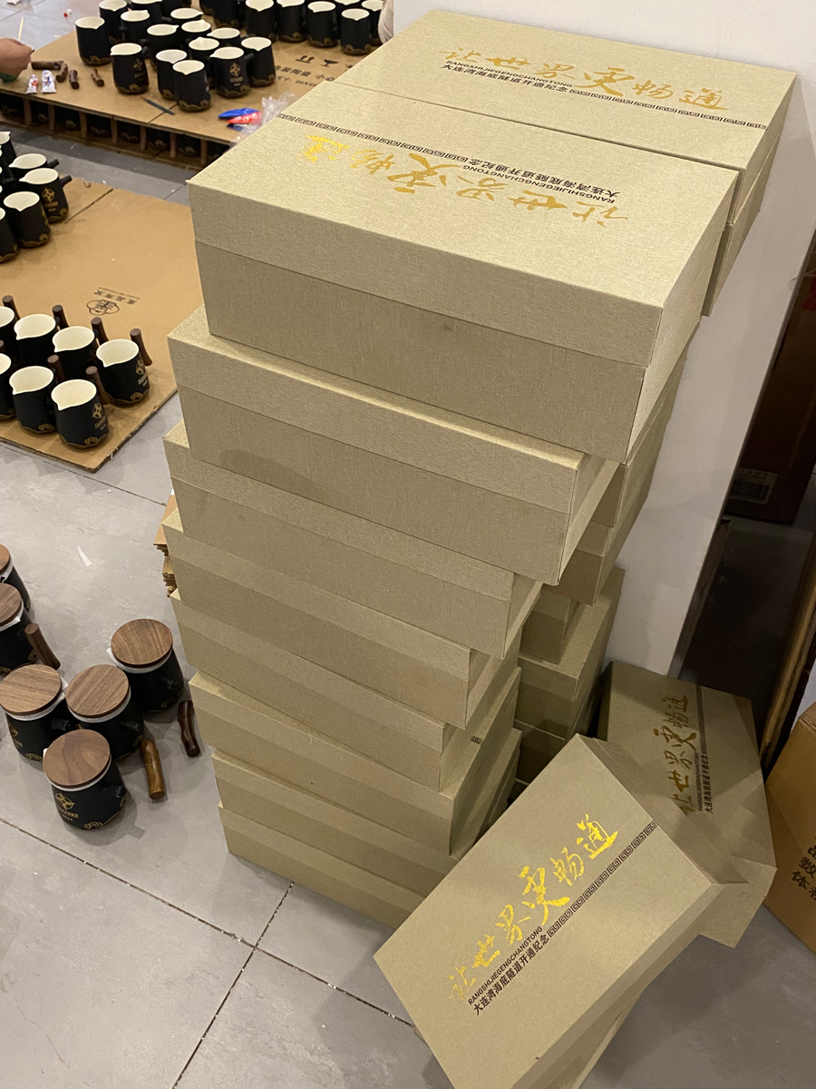 大連灣海底隧道(Dalian Bay Undersea Tunnel),位于大連灣海域,是中國遼寧省大連市境內(nèi)連接中山區(qū)與甘井子區(qū)的跨海通道,也是中國北方地區(qū)首條大型跨海沉管隧道 。大連灣海底隧道于2017年3月30日開工建設(shè) ;于2022年9月29日全線貫通 ;于2023年5月1日通車運(yùn)營 。大連灣海底隧道南起大連東港商務(wù)區(qū)人民路,下穿大連灣海域,北至大連梭魚灣地區(qū)梭魚灣20號(hào)路;隧道全長5.1千米,其中海底沉管隧道段長3千米、陸域段長1.8千米、連接線道路段長0.3千米;道路設(shè)計(jì)為雙向六車道城市快速路,設(shè)計(jì)速度為60千米/小時(shí) 。大連山海底隧道公司找到我們,想要定制一批茶具,經(jīng)過不斷設(shè)計(jì)調(diào)整,最終選定,客戶很滿意!下面是產(chǎn)品的實(shí)拍圖: