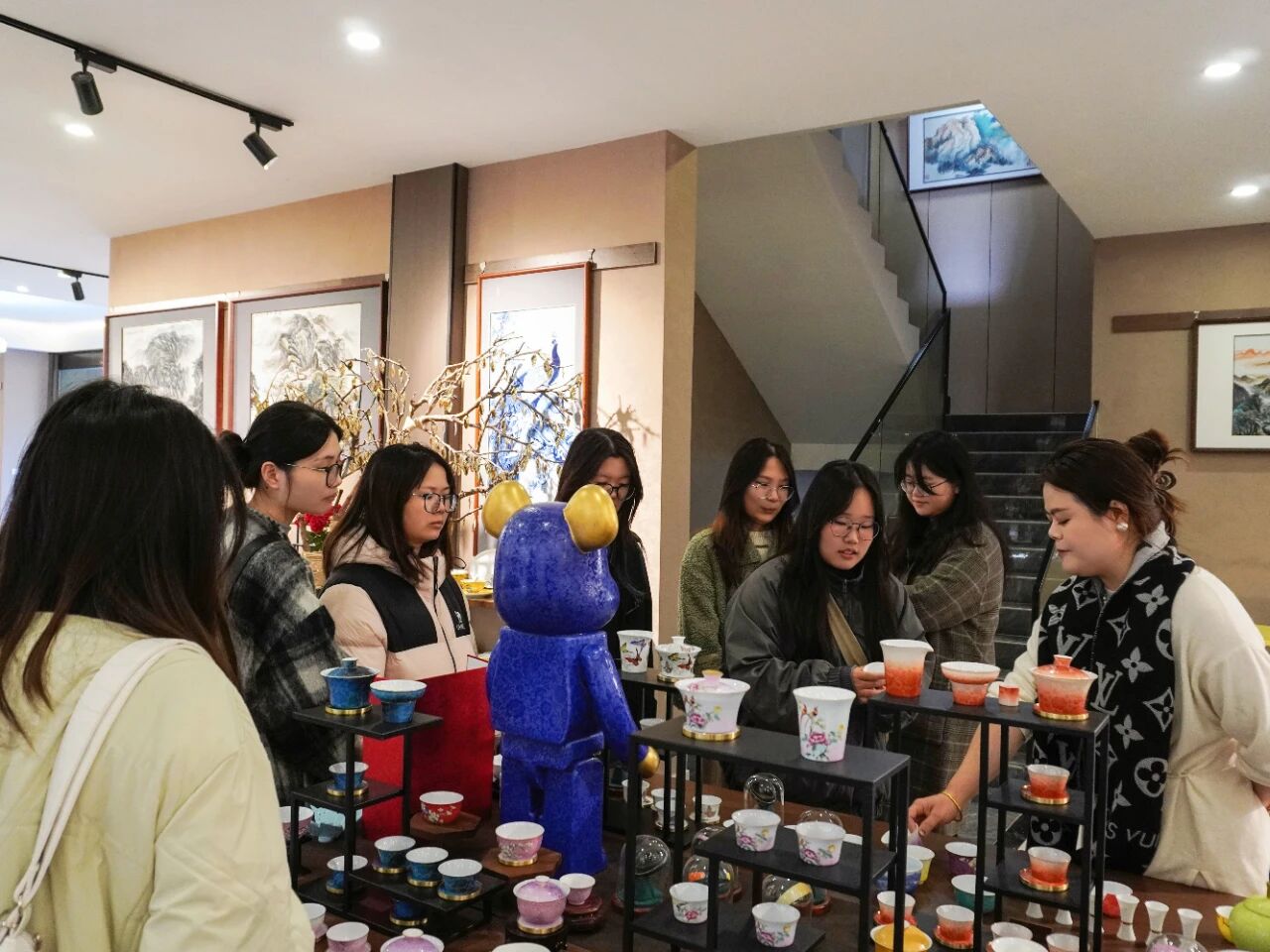 參觀過程中,學(xué)生們積極提問,與企業(yè)負(fù)責(zé)人、技術(shù)人員展開熱烈探討。針對陶瓷設(shè)計(jì)中的色彩搭配、材料選擇,以及如何平衡藝術(shù)性與實(shí)用性等問題,企業(yè)團(tuán)隊(duì)結(jié)合實(shí)際案例進(jìn)行了深入解答。這種“零距離”的互動,不僅拓寬了學(xué)生的專業(yè)視野,也為企業(yè)帶來了新鮮的創(chuàng)意視角。